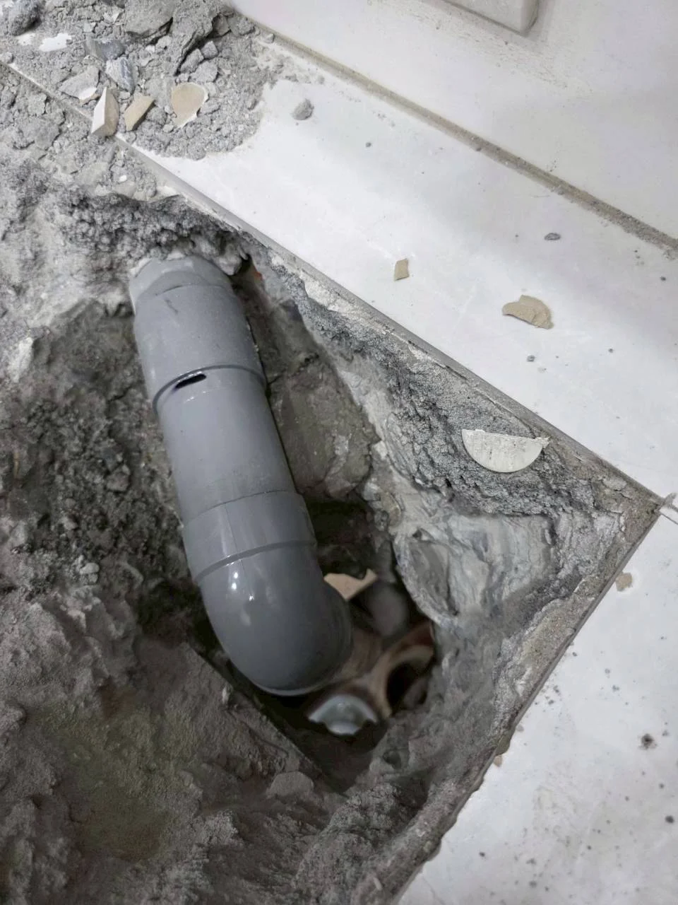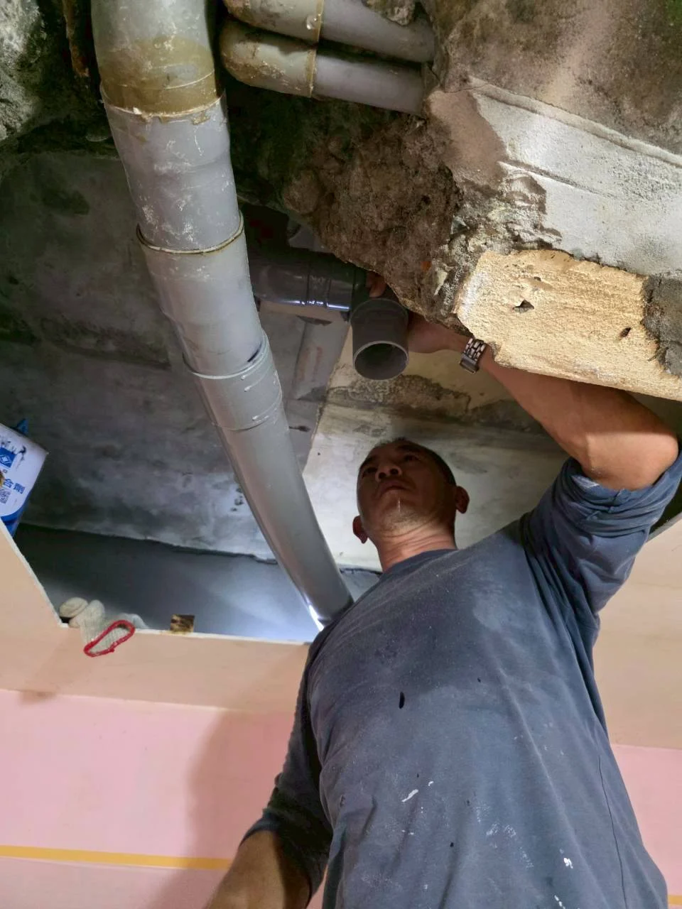 Performance 排水管漏水修繕工程 工程地點 新北市居家住宅 工程說明 本案為住宅室內排水管路滲漏狀況之修繕工程,業主反映地坪附近長期出現積水與潮濕痕跡,經現場檢查後確認為排水管局部老化破裂,導致漏水滲入樓板與天花板結構。 為找出破損位置,師傅首先進行地坪開挖與管道檢視。揭開磁磚後,發現原排水彎管已出現裂縫,必須以新管件全面更換。拆除舊管後,依照現場排水角度與高度重新裁切、組裝 PVC 管件,接續以強化膠黏劑固定,確保密封不滲漏。除地面破裂處之外,技師亦沿天花板管路檢查其他區段,針對可能滲水的接頭進行補強與更換,使整段排水系統恢復良好流暢度。所有管件以正確坡度安裝,避免反味積水問題。 施工完成後,進行多次排水測試確認無滲漏狀況,再交由業主後續安排地坪與天花板復原工程。本次修繕有效消除長期漏水問題,也降低樓板受潮風險,使排水系統恢復穩定運作。